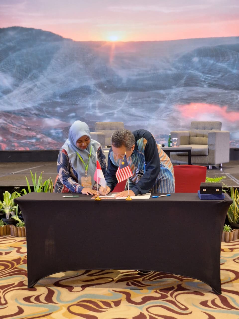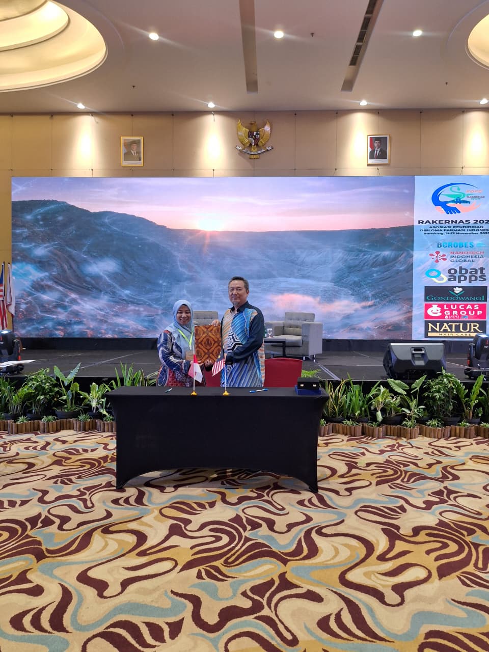 Penandatangan Implementation of Arrangement (IA) Program Studi D-3 Farmasi Institut Teknologi Kesehatan Cendekia Utama Kudus dengan Faculty of Pharmaceutical Sciences UCSI University Malaysia dalam Kegiatan Kolaborasi Kuliah Pakar, Publikasi Riset dan Pengabdian Masyarakat pada Rapat Kerja Nasional (Rakernas) Asosiasi Diploma Farmasi (APDFI) tanggal 11 November 2025 di Bandung.